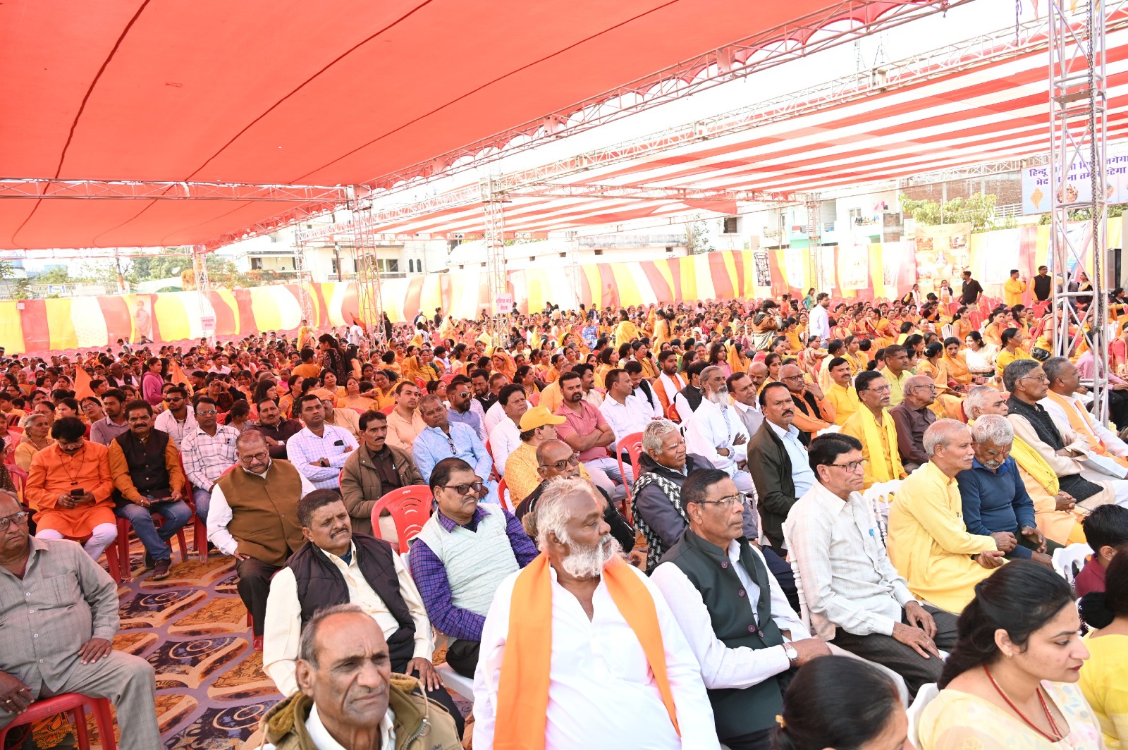 कार्यक्रम में उपस्थित संत गिरिशानंद महाराज ने “हिन्दू” शब्द का भावार्थ स्पष्ट करते हुए कहा कि जो अपने आचार और विचार से हीनता का त्याग करता है वही हिन्दू कहलाता है। उन्होंने हिन्दू समाज को भगवान का विराट शरीर बताते हुए कहा कि जैसे शरीर के सभी अंग मिलकर एक देह बनाते हैं, वैसे ही समाज के सभी वर्गों को समरसता से रहना चाहिए। निषादराज और शबरी का उदाहरण देते हुए उन्होंने कहा कि हिन्दू समाज में भेदभाव का कोई स्थान नहीं है।