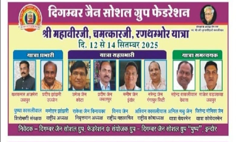 फेडरेशन के राष्ट्रीय मीडिया प्रभारी नितिन जैन ने जानकारी दी कि इस धार्मिक यात्रा के दौरान श्रद्धालु श्री महावीर जी, चमत्कार जी एवं रणथंभौर आदि पवित्र जैन तीर्थ स्थलों के दर्शन करेंगे।