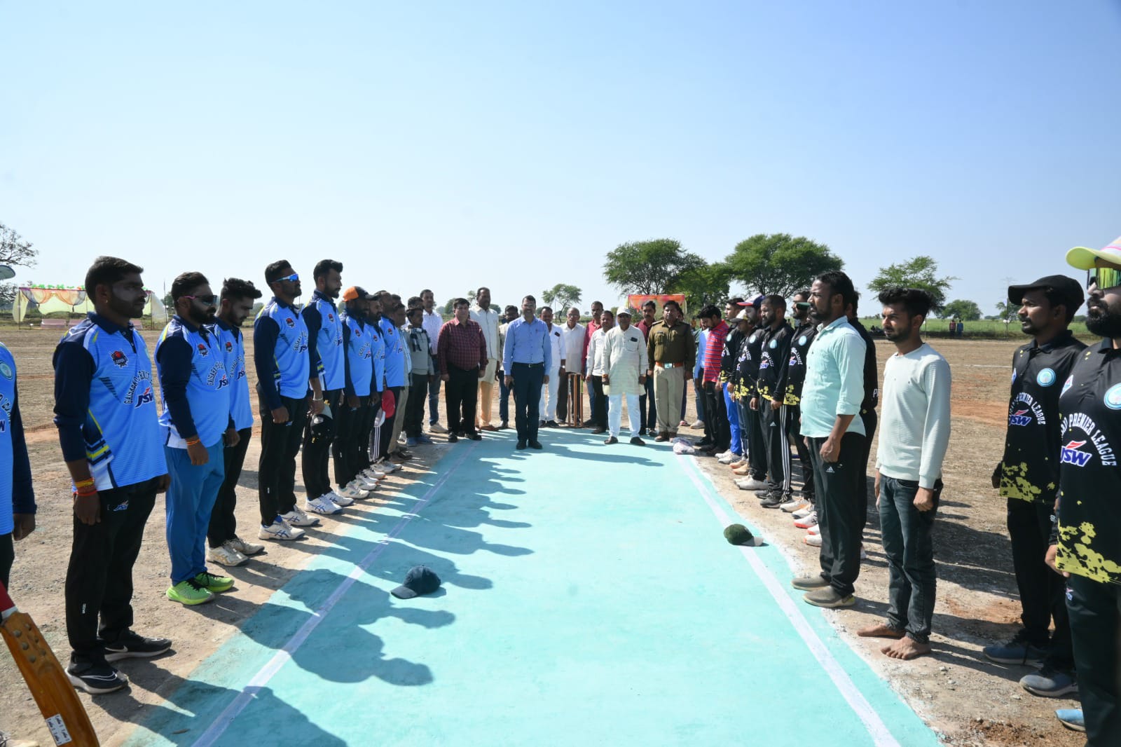 मैच का शुभारंभ जेएसडब्ल्यू के प्रोजेक्ट हेड देवेंद्र शर्मा द्वारा टॉस उछालकर किया गया। इस अवसर पर मुख्य अतिथि बहादुर श्रीवास्तव, जुगलकिशोर पटेल, थाना प्रभारी सौरभ शर्मा, जेएसडब्ल्यू के डिप्टी मैनेजर राहुल वर्मा, अमित कुमार एवं श्यामसुंदर रावत सहित कई गणमान्य नागरिक उपस्थित रहे। आयोजन समिति से रणधीर दाहिया, गोपाल पटेल, लक्ष्मण तिवारी, मुकेश पटेल सहित अन्य सदस्यों की सक्रिय भागीदारी रही। बड़ी संख्या में दर्शकों ने मैदान में पहुंचकर खिलाड़ियों का उत्साहवर्धन किया।