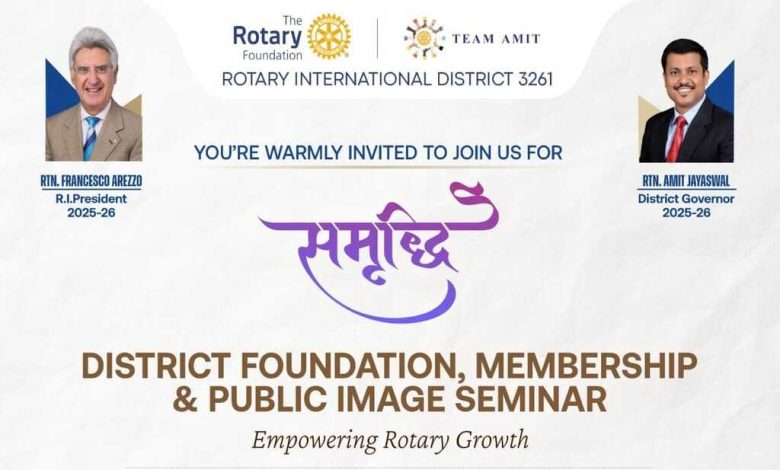रोटरी डिस्ट्रिक्ट फाउंडेशन, मेम्बरशिप एवं पब्लिक इमेज सेमिनार “समृद्धी”– संस्कारधानी में 30 को
