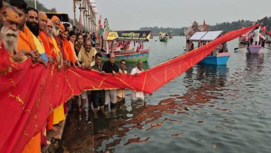 1100 फुट की चुनरी से उमाघाट पर मां नर्मदा का भव्य श्रृंगार, दुग्धाभिषेक और महाआरती